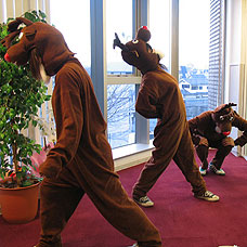 サンタ「準備運動がてらにランニングでいくぞい!」 トナカイ「そんなー、無茶やわぁ~」 サンタ「みんなあがれ! ふらのの雪崩攻撃だ!」 トナカイ「松山…くん?」 |
