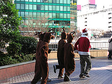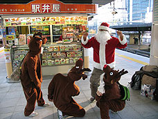 待たせたな!サンタ到着じゃ!トナカイたちにようやく追いついたぞい! サンタ「東京駅までランニングしとったら、遅れてもうたわい」 トナカイ「そんなんより朝ごはん買って~な」 |