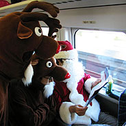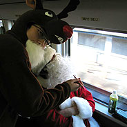 「こまち7号」で、仙台に出発じゃ!…ん?トナカイが1人おらんの? トナカイ「待ってください~!おいてかんといて~!」 |