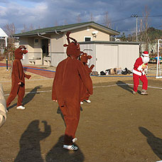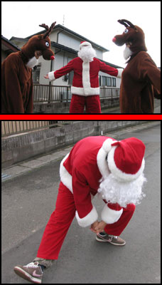 サンタ「ワシがボールを持ったら無敵じゃ!」 トナカイ「サンタさんがめずらしくカッコいい…」 |