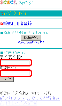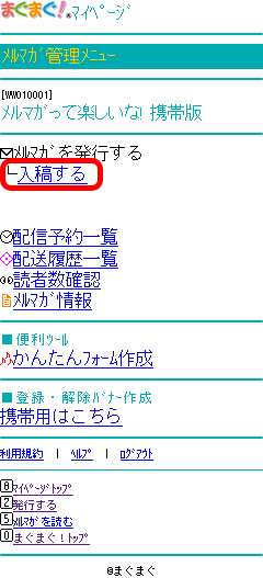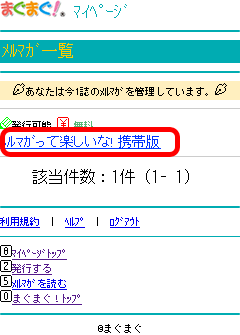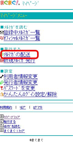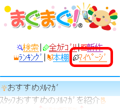 - 携帯版まぐまぐ!のトップページ上部の「マイページ」をクリックします。