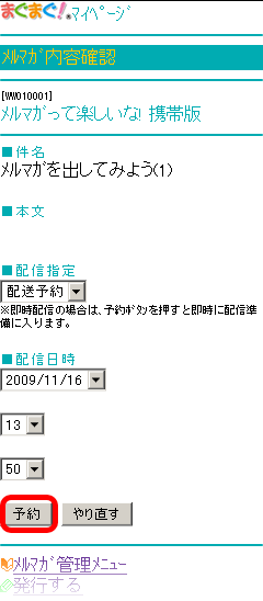 (複数発行している場合、該当するメールマガジンを選びます。)
