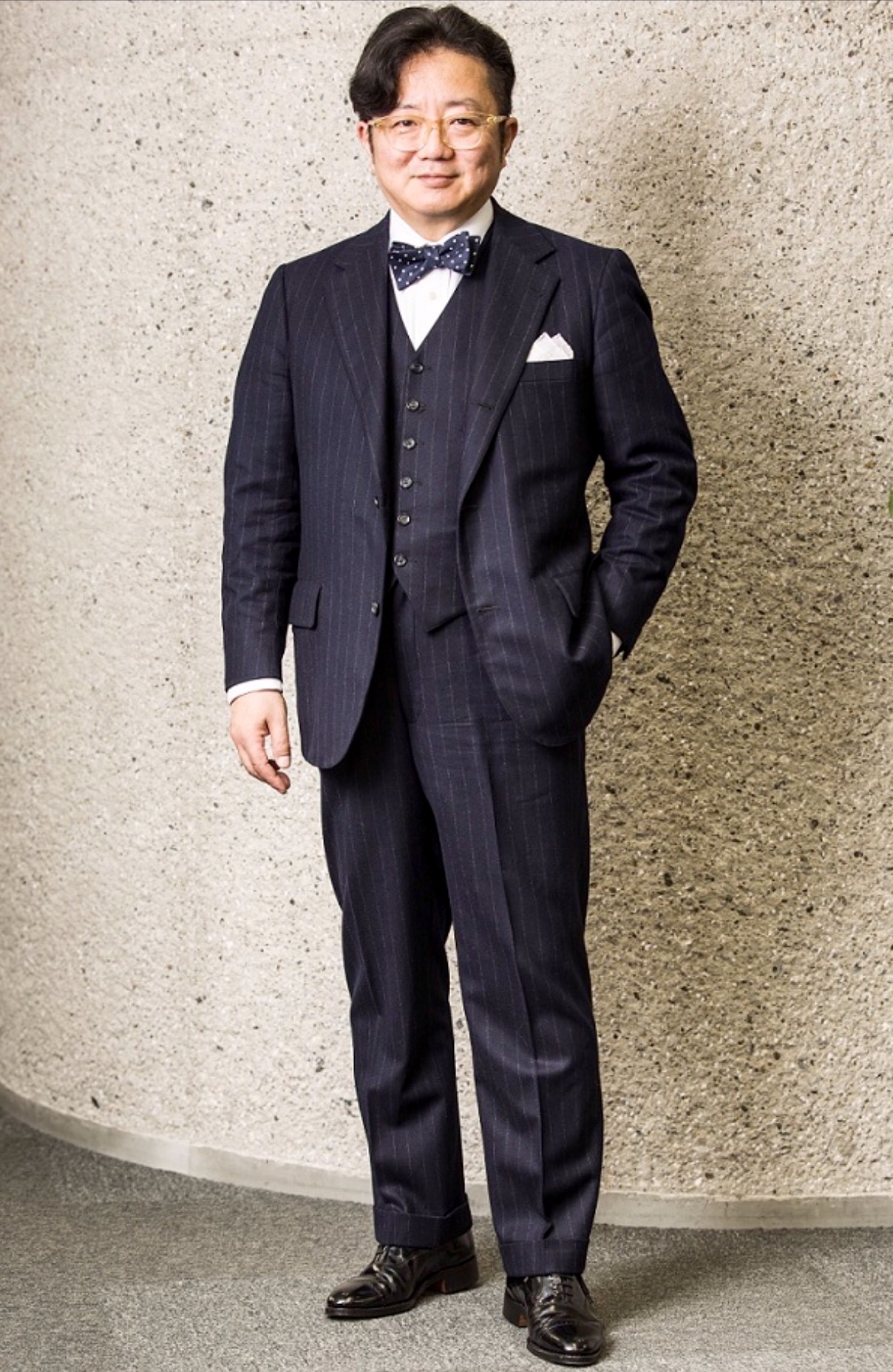 皆様初めまして、ケン青木です。ニューヨークで紳士服の仕事を始めて26年。世界に通じる紳士服について御一緒に勉強を深めて行きましょう。着物に決まり事が沢山あります様に、西洋の伝統的紳士服にも決まり事はあり、それらを正しく知る、即ち彼らの価値観を正しく理解することなのです。多くはビジネスの相手、他者へ敬意を表すものです。20代半ばを過ぎましたら、自分ではなく他人のため、礼節として御自身の身支度を整えることに是非御心掛けいただければ、と。そのための重要ポイントについて、ファッション・流行とは別の角度からお話して参ります。