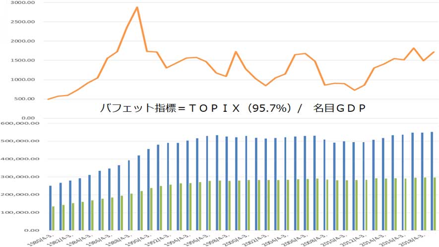 TOPIXは東証の時価総額の95.7%を占めているので、日本の株価時価総額をほぼ表していると見なしていい。