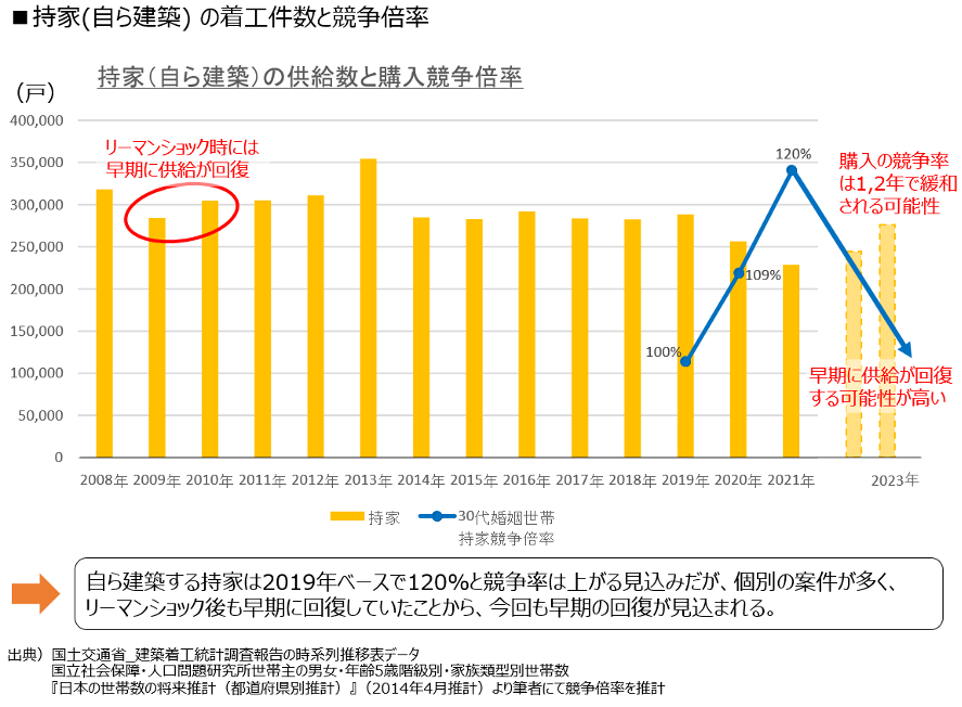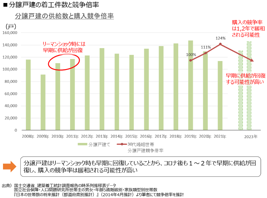 そのため、2021年に着工件数が減少したとしても、1~2年で供給は回復、競争倍率の緩和が予想されます。