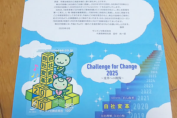 2014年12月末権利分から現在の株主優待が実施されるようになり、過去6回はすべてリラックマデザインのQUOカードとなっています。