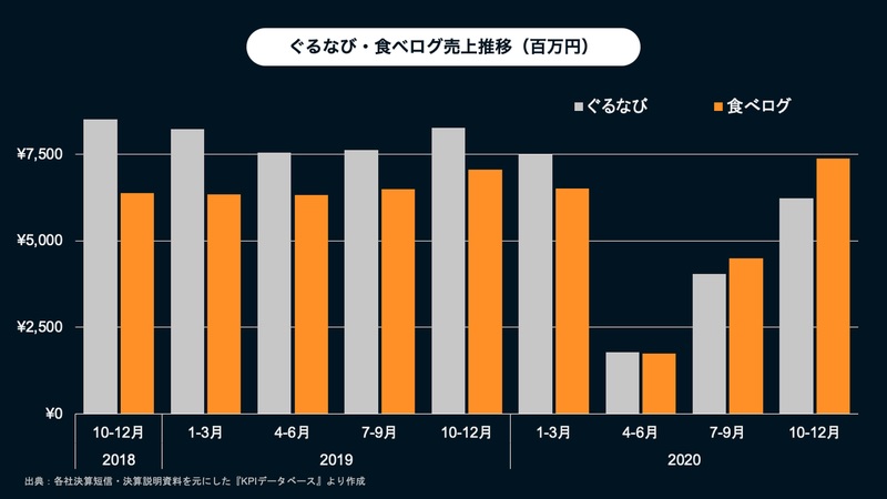 元々の売上はぐるなびの方が優勢でしたが、コロナの自粛期間を経て、なぜこのような形勢逆転が起こったのでしょうか?