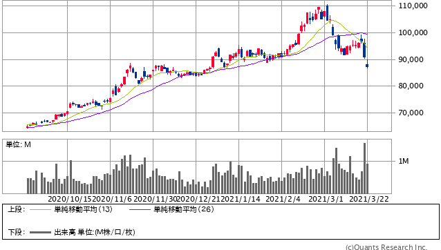 ファーストリテイリング<9983> 日足(SBI証券提供)