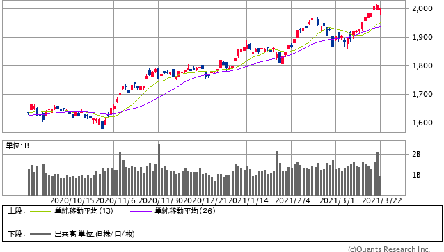 日銀が、現在のグロース売り、バリュー買いの相場を容認するような格好となっている。年度末を控え、配当権利取りが活発化するため、目先はTOPIX優勢の相場展開が続くことになりそうである。