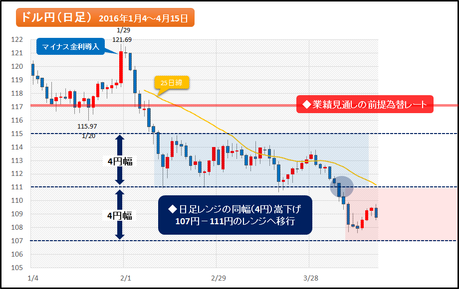 これはチャート上のことばかりでない。16年度の企業決算見通し上、107円台は想定レートではないからだ。当然に下方修正されうる。