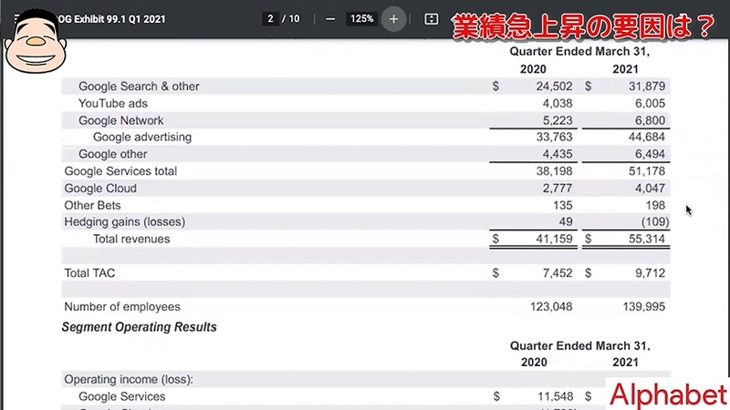 それ以外にGoogleはコロナが始まってからかなりコスト管理を徹底的に行いました。そのため、コストが増えずに売上が増えたので利益が伸びたと見るのが正しいと思います。
