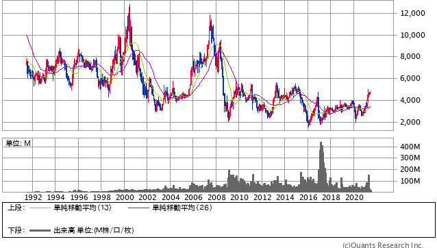 実際に業績に関しても、ずっと売上高は右肩下がりになっています。株価も長期で見るとずっと下落傾向にあります。一時的に上がったりはするのでしょうけれども、結局それは投機と変わらないということになります。