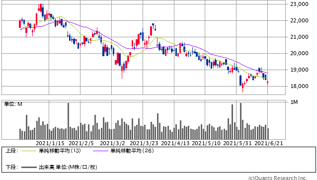 今年に入ってからのニトリの株価の推移ですが、年初には2万3,000円ほどあったものが、今は1万9,000円割り込むというところまで値下がりしています。