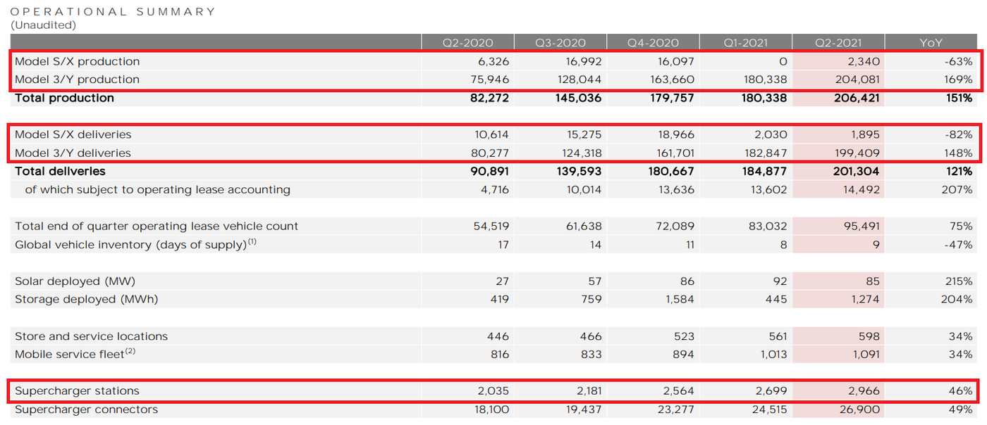 充電ステーションのSuperchargerも3,000か所に迫る勢いで増加しており、YoY+46%と順調に増えています。