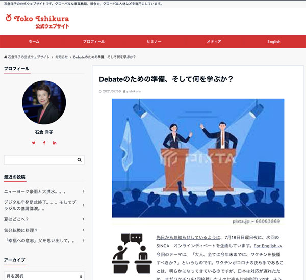 石倉洋子さん個人ブログのキャプチャ(現在は閉鎖中)