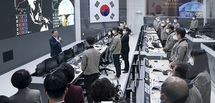 「ヌリ号」打ち上げの成功・失敗かの判断がつかないなか、そこに文在寅大統領が登場した。