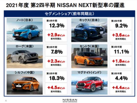 なぜかというと、先ほど売れる車がないのが日産の最大の問題だと言いましたけれども、ゴーン氏がいなくなってから、再び良い車を作るということに磨きをかけていまして、2021年度には新型車が比較的好調な推移を遂げているわけです。
