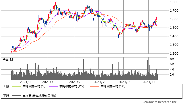 「住友電気工業<5802> 日足(SBI証券提供)」