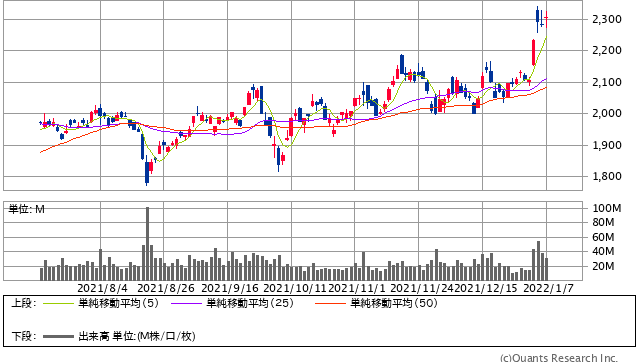 トヨタ自動車<7203> 日足(SBI証券提供)
