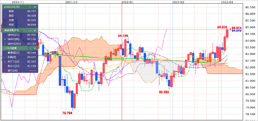 いずれにせよ、ひたすらウクライナ情勢が相場を支配していますので、まずはニュースのヘッドラインに注意しながらトレードしていただければと思います。