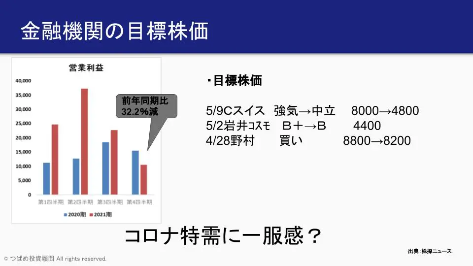 市場はコロナ特需に一服感が出ているのではないかと判断してる可能性があります。