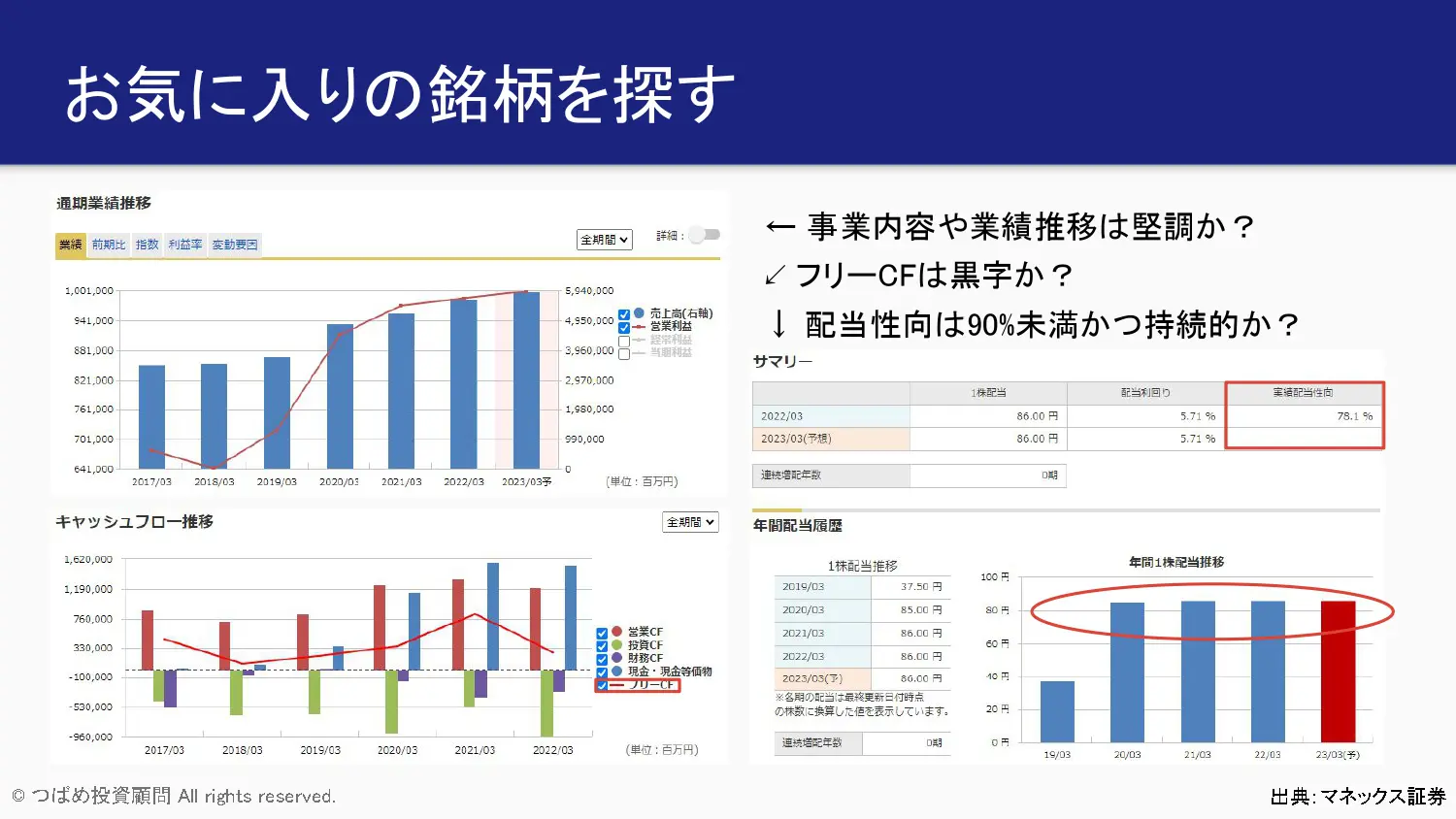 過去の推移はもちろん、配当の方針というのを確認しておいた方がいいかもしれません。
