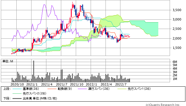 株価の下値は一目均衡表の週足「雲」上限水準に支えられており、重要な節目である2,400-2,500円処を上抜けてくるかどうかが注目される。 ※2022年8月中に初月無料の定期購読手続きを完了すると、以下の号がすぐに届きます。