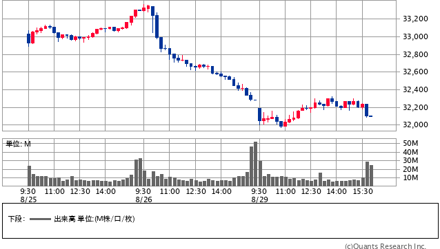 1日でマイナス3%は、暴落です。その後、再び、800ドル(2.4%)下げています(8月27日:土曜日)。先物とCFDの市場しかない日曜をはさんで、月曜日にどうなるか、わからない。