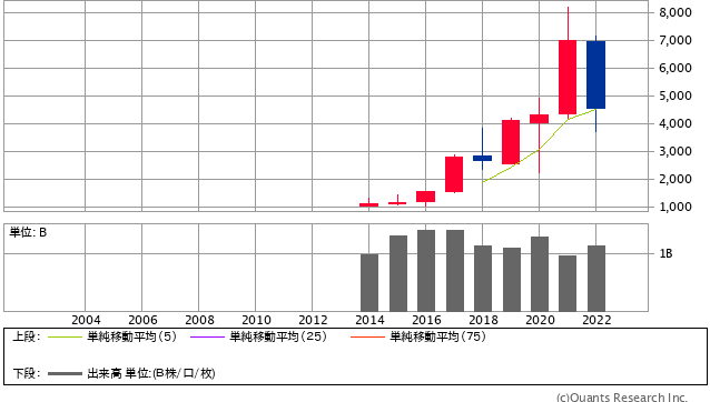 年足を指定してみると、昨年の株価の上昇分をほぼ全て帳消しにしています。