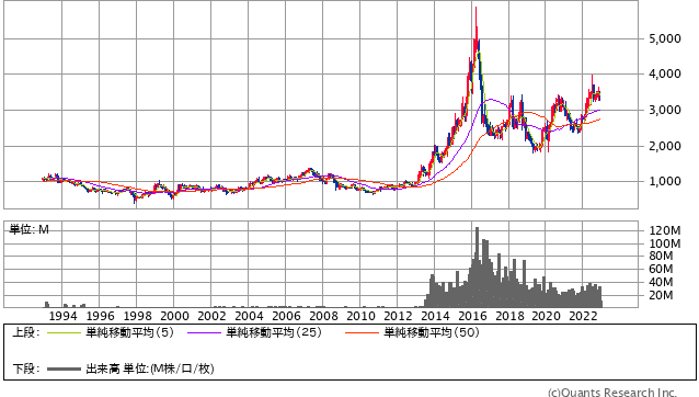 過去の例で言えば小野薬品。バブル相場以来の高値を更新したのが、過去最大の大相場の兆しだった。