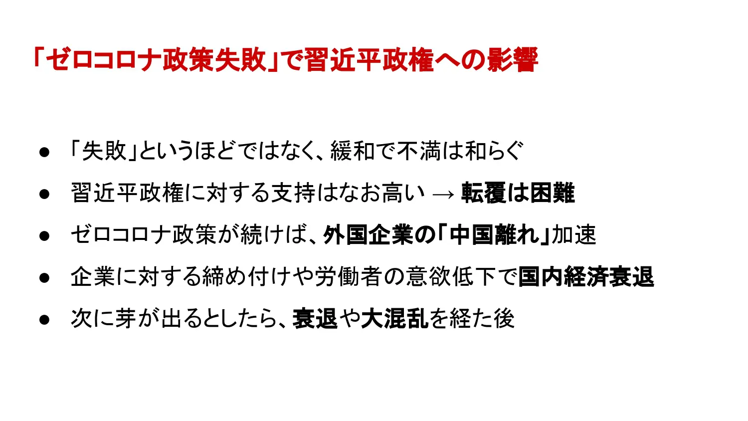 ゼロコロナ政策失敗で、習近平政権どんな影響があるのか。