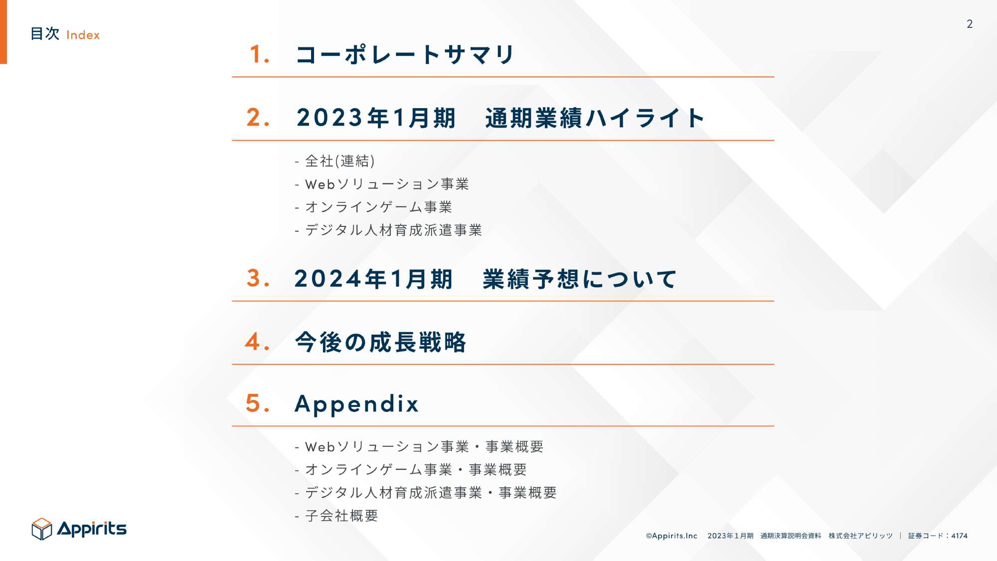 2023年3月17日に発表された、株式会社アピリッツ2023年1月期決算説明の内容を書き起こしでお伝えします。