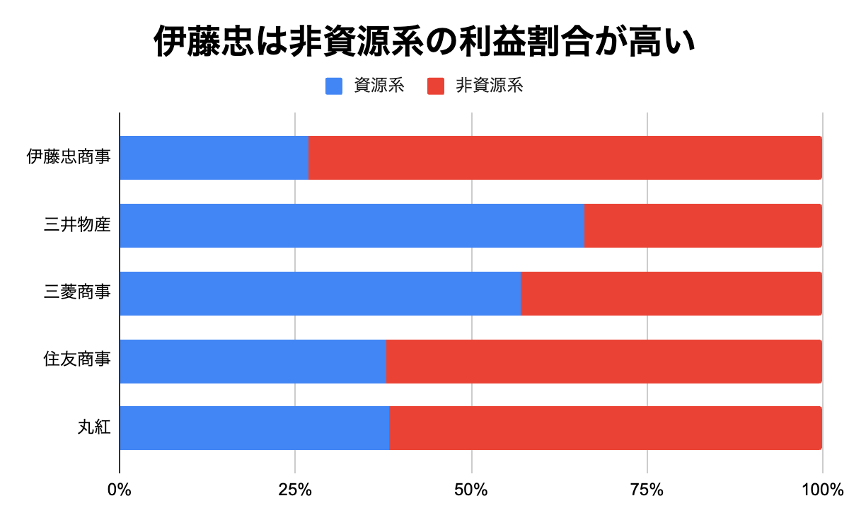 三井物産の特徴は、金属資源やエネルギーなど資源系の利益割合が高いことです。