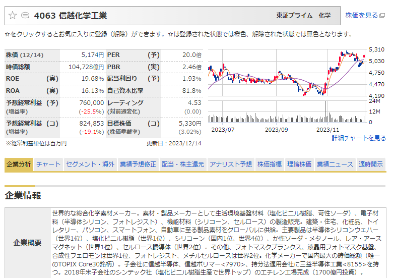 次に取り上げるのは信越化学工業です。