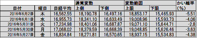 数表 :「直近5日間の日経平均と変動の範囲・かい離率」