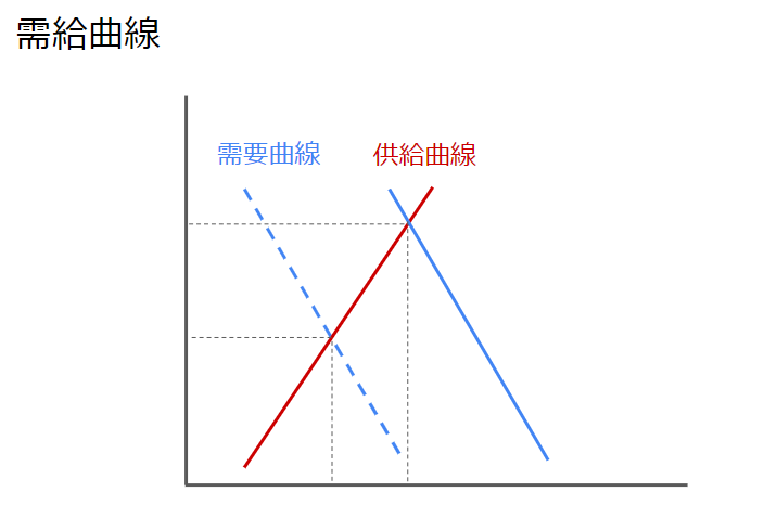 エヌビディアのGPUの供給曲線が赤線のようになっていて、元々の需要曲線は青の破線のところでした。