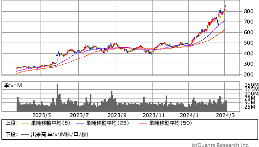 これは業績にも裏付けされていて、売上では四半期ベースで3~4倍、利益は5倍くらいに伸びています。