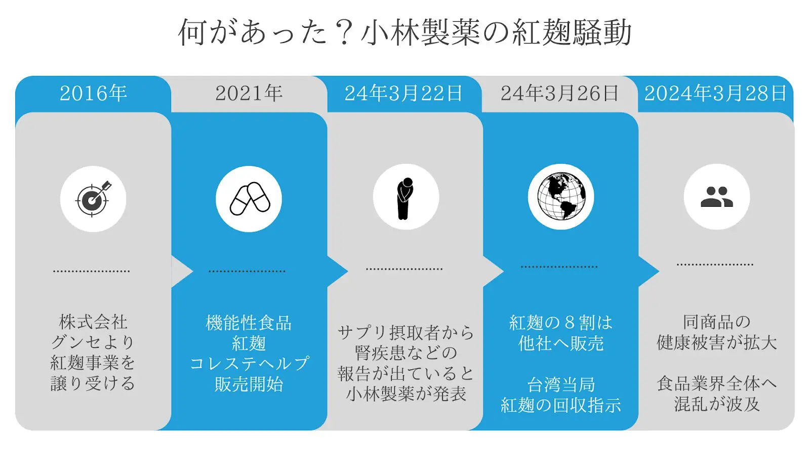 紅麹事業は2016年にグンセ株式会社から譲り受けたものです。そして「紅麹コレステヘルプ」を発売したのは2021年でした。