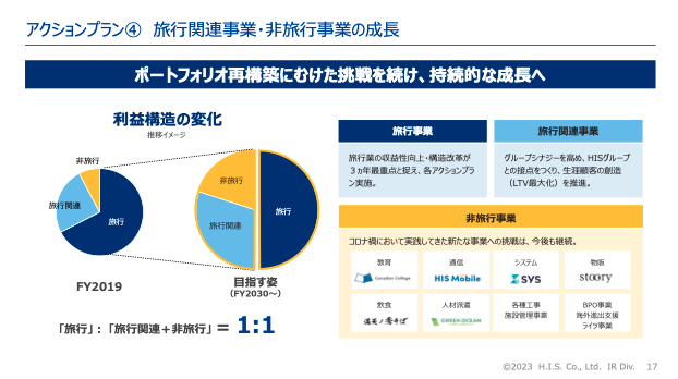 HISの中期経営計画を見ると、ポートフォリオの再構築をかかげています。