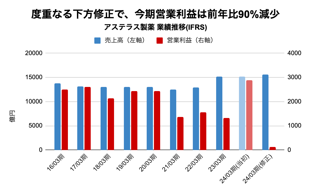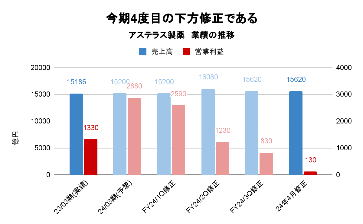 2024年4月12日、アステラス製薬は下方修正を発表しました。