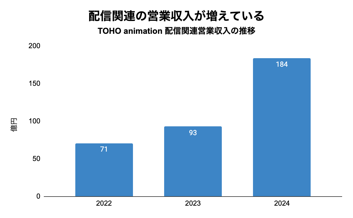 また、東宝はアニメ制作の機能を有しているため、こういった配信サービスからの営業収入(売上)も増加しています。