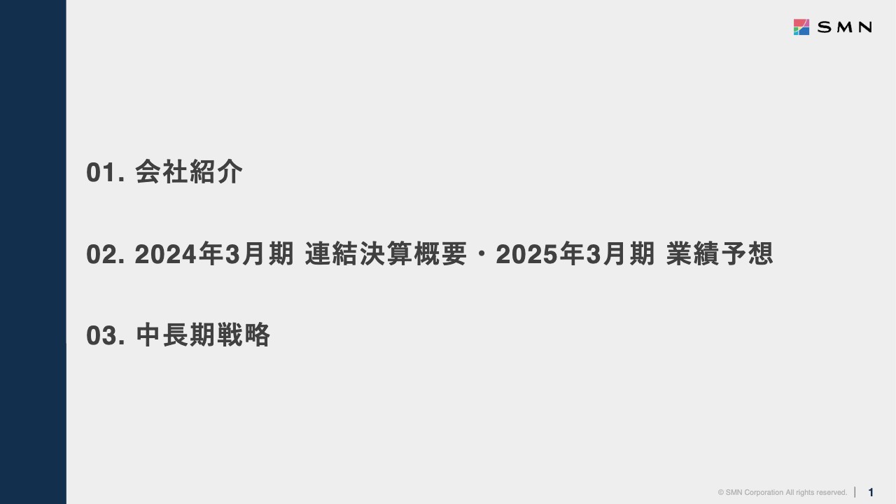 2024年5月1日に発表された、SMN株式会社2024年3月期決算説明の内容を書き起こしでお伝えします。
