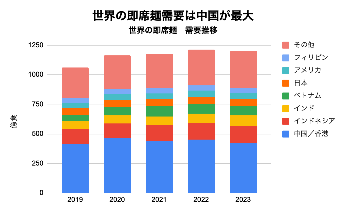 世界シェアトップはインドネシアの企業であるインドフード、2位は中国の康師傅(カンシーフー)、そして世界3位に日清食品です。