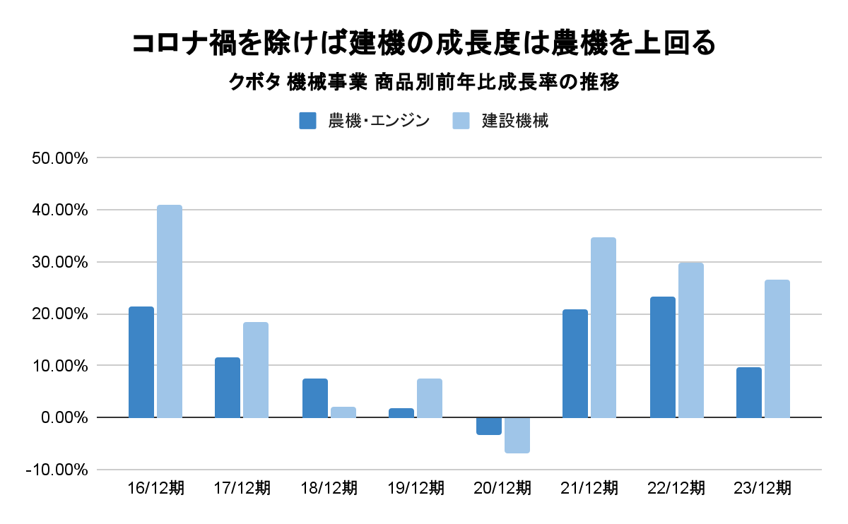 先ほど、機械事業の中で売上高を稼いでいるのは「農機・エンジン」と説明しましたが、売上の成長率が高いのは「建設機械」です。