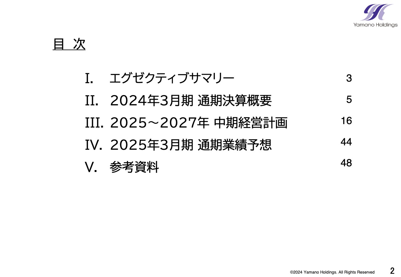2024年5月27日に発表された、株式会社ヤマノホールディングス 2024年3月期決算および中期経営計画説明の内容を書き起こしでお伝えします。