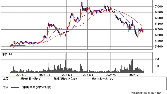 日本マクドナルドホールディングス<2702>日足(SBI証券提供)