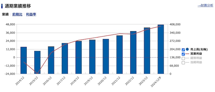 まずは業績を見てみましょう。業界内で圧倒的な地位を確立しながらも、必ずしも順風満帆ではありません。