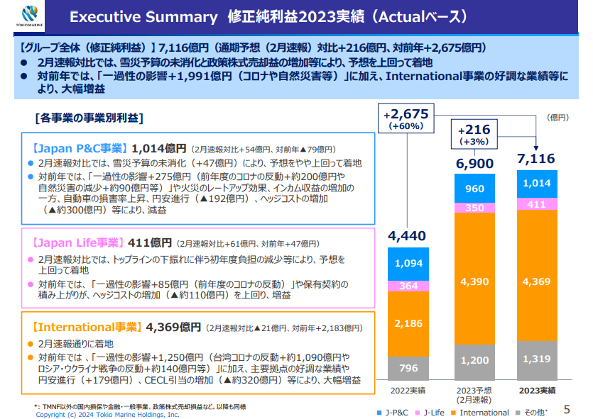 また、東京海上は海外での売上が大きいので、円安が利益の改善に寄与していることは確かです。