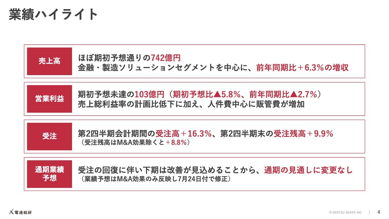 2024年7月31日に発表された、株式会社電通総研2024年12月期第2四半期決算説明の内容を書き起こしでお伝えします。