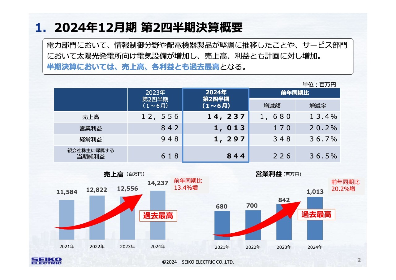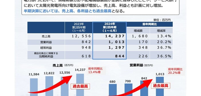 2024年7月30日に発表された、株式会社正興電機製作所2024年12月期第2四半期決算説明の内容を書き起こしでお伝えします。